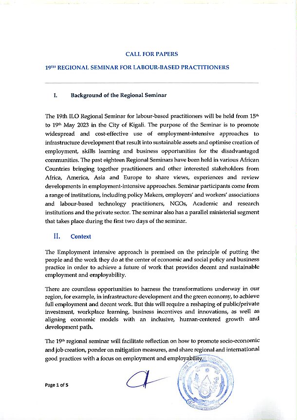 We are pleased to invite researchers to submit high quality papers/abstracts for the theme and sub-themes of the 19th ILO Regional Seminar to be held in Kigali from 15th to 19th May 2023.