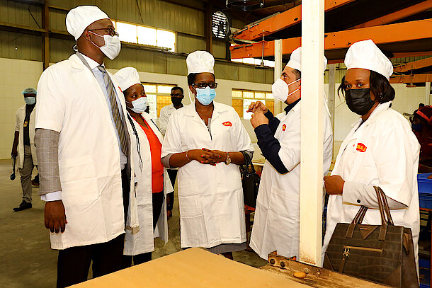 Ni muri urwo rwego, kuri uyu wa Kane, tariki ya 6 Gicurasi 2021, Madamu RWANYINDO KAYIRANGWA Fanfan, Minisitiri w’Abakozi ba Leta n’Umurimo ari kumwe na Madamu HABYARIMANA Béata, Minisitiri w’Ubucuruzi n’Inganda, hamwe na Bwana Pudence RUBINGISA, Umuyobozi w’Umujyi wa Kigali, basuye Icyanya cyahariwe Inganda i Masoro.
