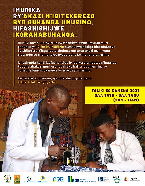 During the virtual job fair and business ideation seminar for youth employment and business creation held on June 30, 2021, four (4) garment big companies in Kigali committed 380 jobs to youth who completed dual training. The seminar was jointly organized by the Ministry of Public Service and Labour, the Private Sector Federation and APEFE in the framework of the Workplace Learning Support Programme – IGIRA KU MURIMO.